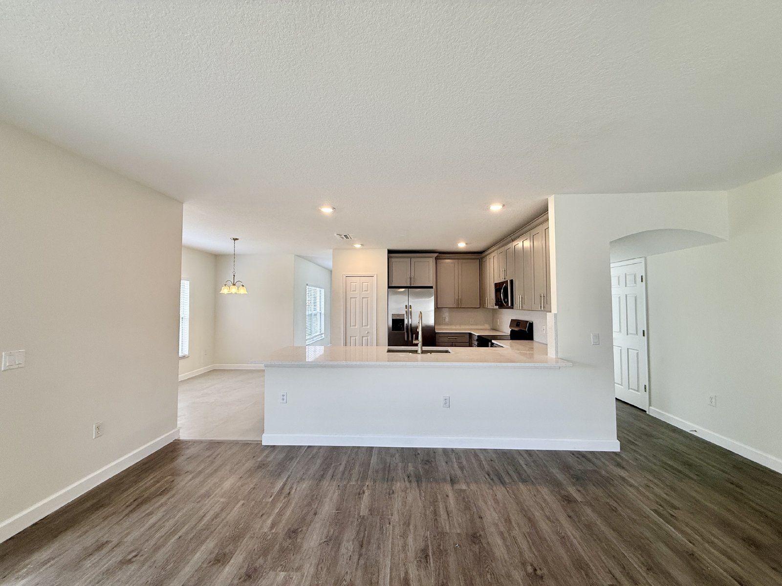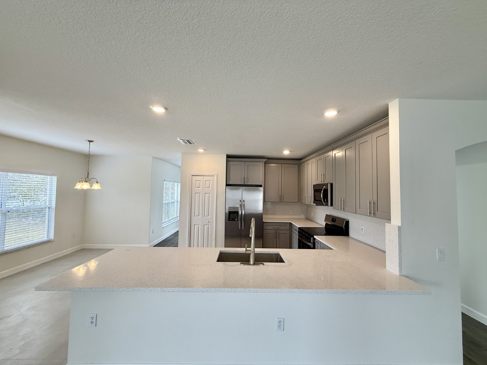 Walking into this property you enter the light and bright Living Room, which connects to a separate Dining Room. The Kitchen has upgraded BRAND NEW grey cabinets, quartz counters, and large peninsula island. You will also find BRAND NEW kitchen appliances including stainless-steel finish refrigerator, stove, dishwasher, and microwave. The Kitchen overlooks the spacious Great Room, which opens to the covered porch and the backyard through large sliding glass doors. Also on the first floor is the renovated Half Bathroom, large Laundry Room with washer/dryer connections, and Two-Car garage with automatic opener.