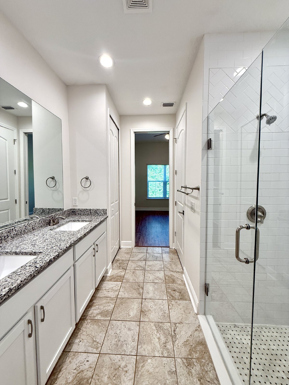 The Bedrooms are perfect for relaxation, with plenty of natural light and walk-in closet space. The Bathrooms are stylish and functional. The Primary Bathroom has 2 sinks, a walk-in shower, huge walk-in closet and private toilet area. There are ceiling fans throughout the home.