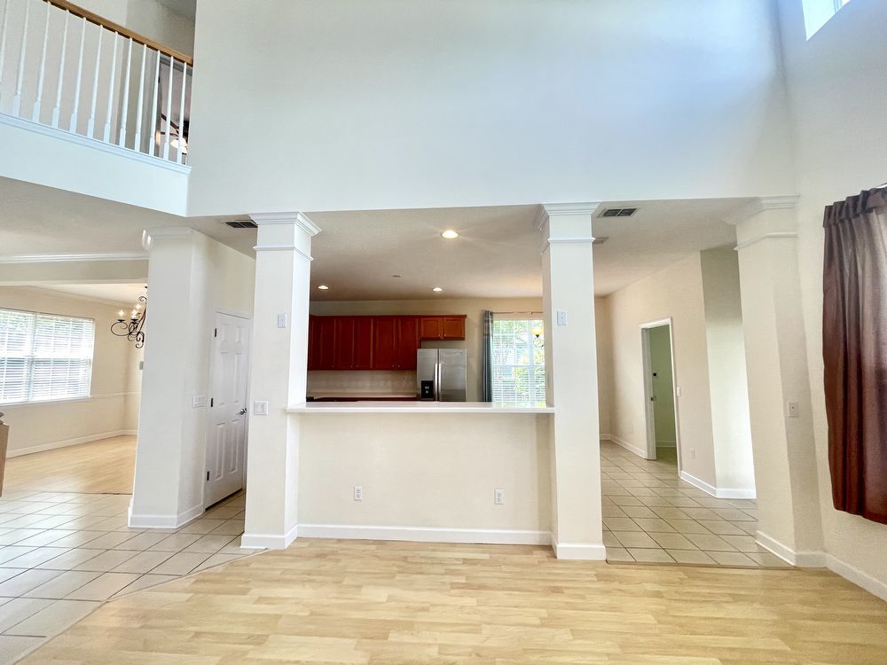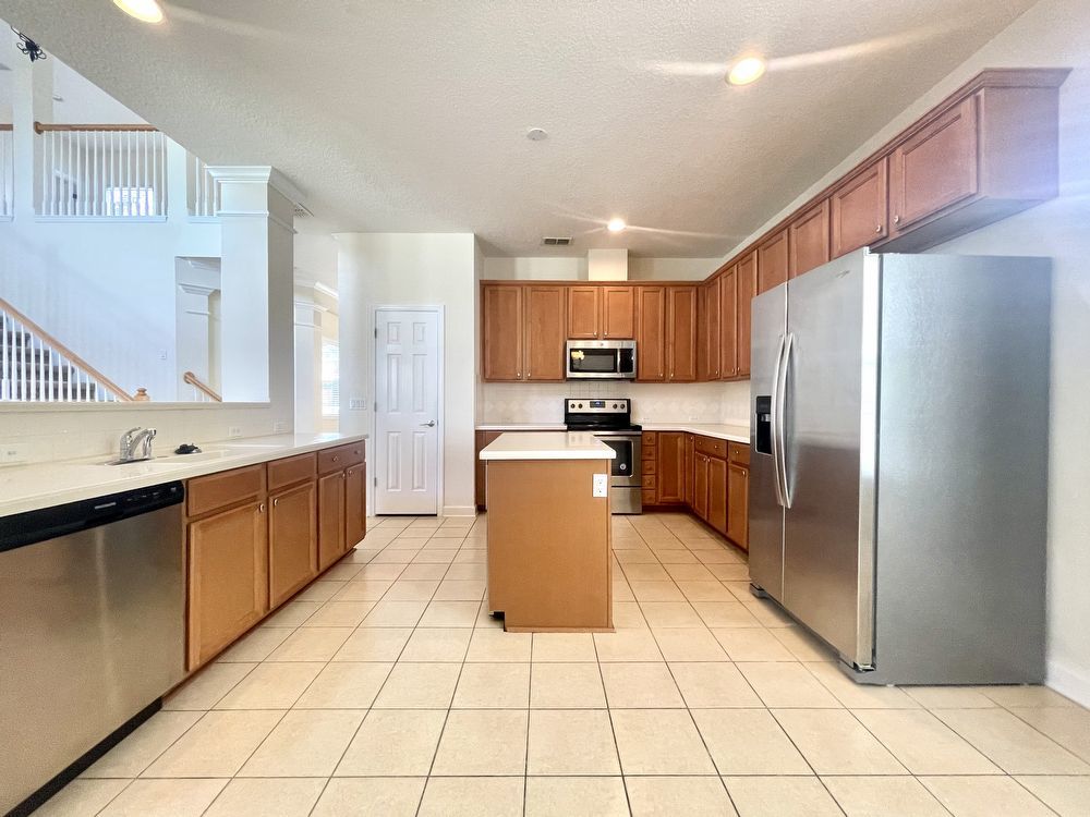 This Large, Two story home is a wonderful place to call home! The first thing you will notice about this home as you walk in are the tall ceilings, and open, floorplan with lots of windows for wonderful natural light! The beautiful Kitchen features upgraded 42 inch cabinets and an upgraded appliance package: stainless steel appliances with wine fridge, refrigerator, built-in microwave, smooth-top range, dishwasher and disposal. There is also an island in the kitchen as well as a an eat in area.