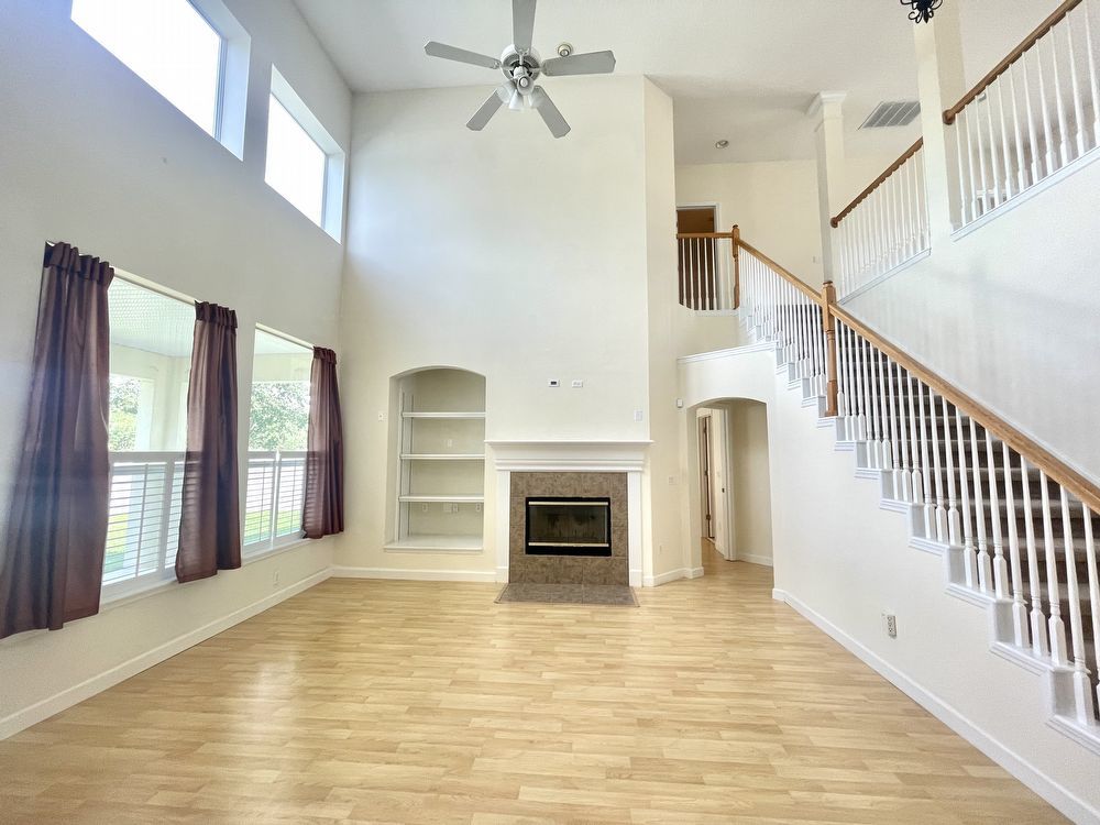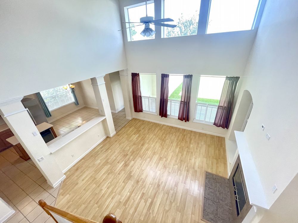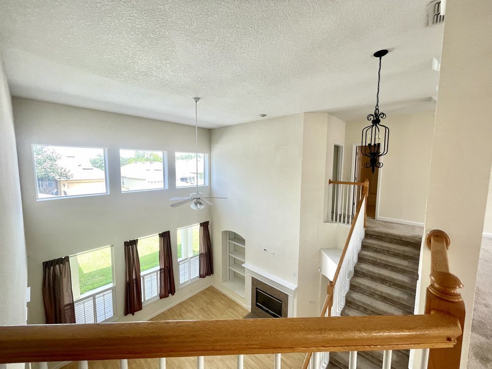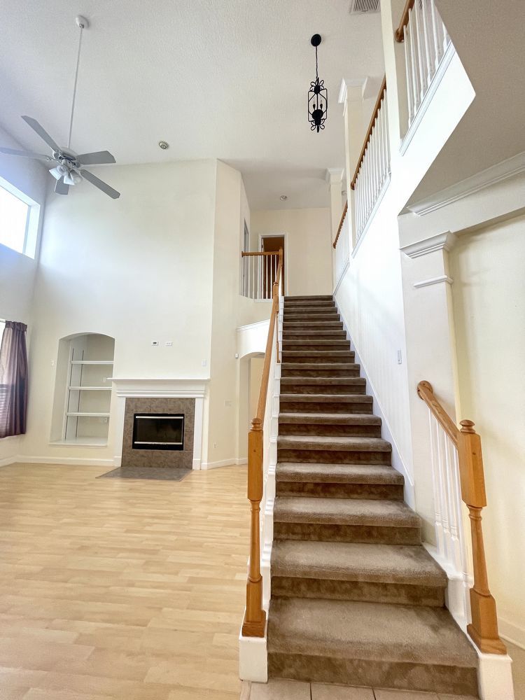 The half bath and the laundry room are off of the kitchen as well. The Kitchen opens to the Great Room with very high vaulted ceilings with fireplace for an open layout. Downstairs there is also the Formal Dining Room, separate Living Room, Laundry room and a Half Bath and Master Suite. Upstairs is a huge loft that overlooks the downstairs. There are the other four bedrooms and two full baths upstairs as well. The Master Bedroom is downstairs and opens to the beautiful Master Bath featuring double sink vanities, soaking tub and beautiful walk-in shower. The master closet in this house is a must see! Huge, walk-in closet with built in's is every woman's dream! There is a nice sized covered back patio, which overlooks the large, vinyl fenced backyard. There is ample car parking with the home having a two-car garage accessed in the rear.
